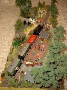 Das Schöne an einem Diorama ist ja, im Gegensatz zu einer Modellbahnanlage, dass die Eisenbahn nur schmückendes „Beiwerk“ und nicht das Hauptelement ist. Im Umkehrschluss kann man eine Modellbahn natürlich so detailgetreu wie möglich gestalten, was sie für den Betrachter dann wesentlich interessanter macht.