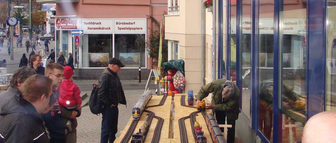 Unter dem Motto „Erst Schnäppchen dann Häppchen“ ist unsere lange Modellbahn-Nacht zum Abschluss der Rostocker Lichterwoche in den letzten Jahren zur Tradition geworden.