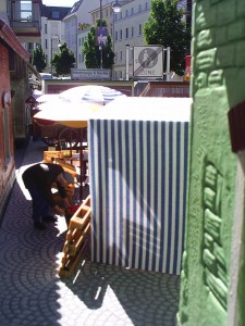 Ein kurzer Blick zwischen zwei Verkaufsbuden hindurch.