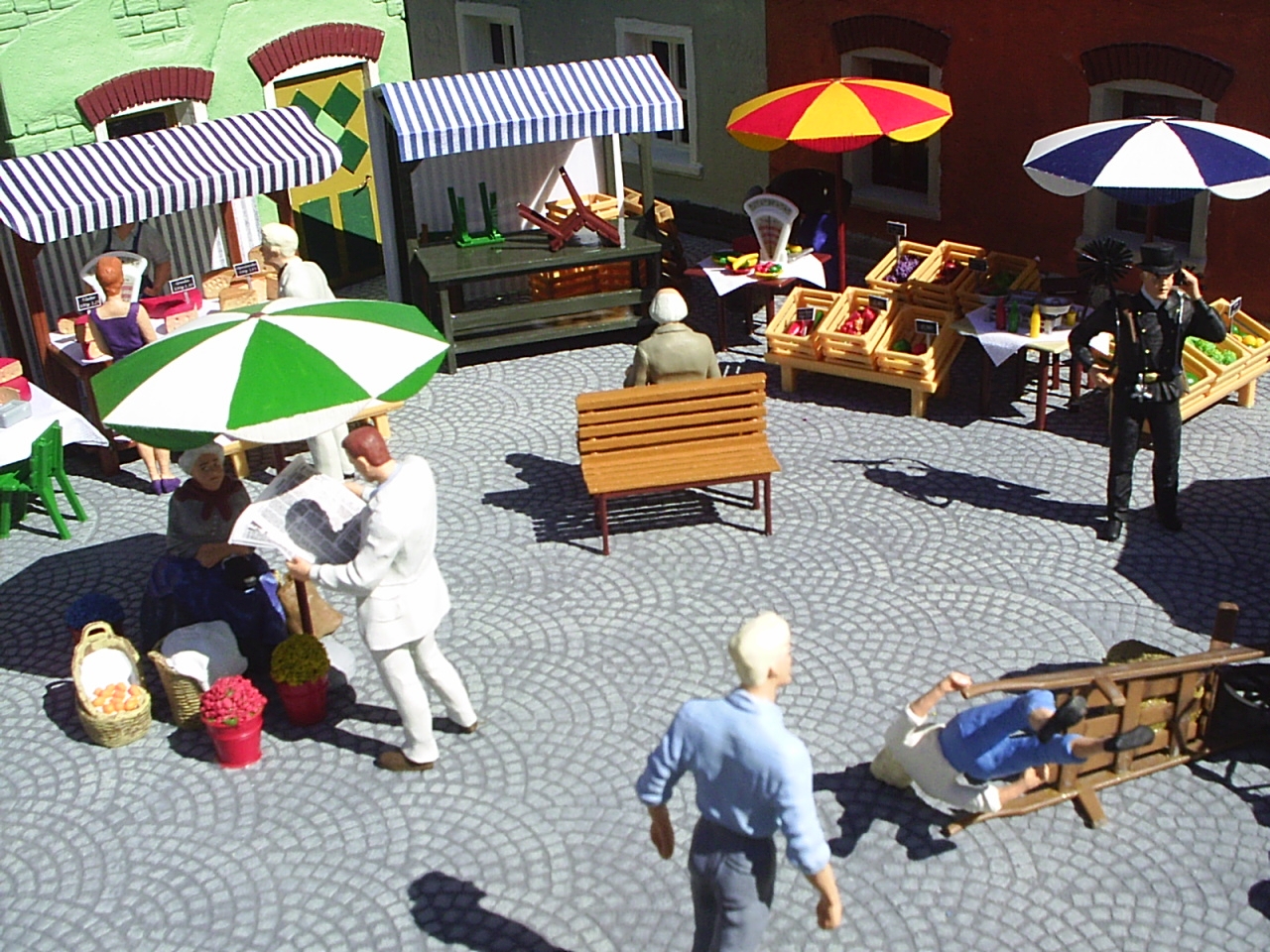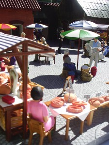 Der Grundgedanke eines Dioramas liegt ja darin, kleine Szenen oder Geschichten darzustellen. Wenn sie genau hinsehen, werden auch sie auf diesem Diorama viele Szenen eines Markttages entdecken.